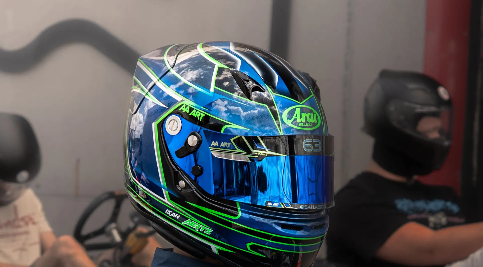 Custom helmet art for motorsport drivers.